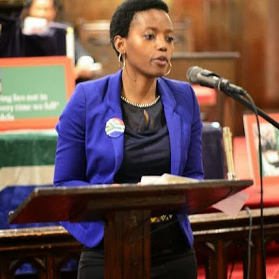 Luthuli giving a speech at the Imbizo H.C Nelson Mandela Memorial service, at the historical AME church